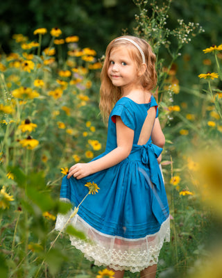 Step into the enchanting world of the "Felicity Dress"—a beautiful blend of vintage charm and modern comfort. Perfect for joyful twirls in flower-filled fields or elegant moments at special occasions.